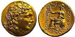 He was not a member of the royal house and could not use the title BASILEOS, nor could he be depicted with a diadem. But a hint of military glory still exists on his silver coins.