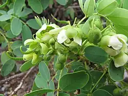 Several years after the restoration, Magnacca, who is also employed by the DNLR's Division of Forestry and Wildlife,[2] participated in a 2024 survey of the Mākolelau conservation area in partnership with the Plant Extinction Prevention Program (PEPP),[6] completing one of the first major insect surveys in the area in the last century.[1] During the survey, he discovered H. paumako foraging on flowers of kolomana (Senna gaudichaudii); the bee is considered a pollinator of that species.[6] The habitat area is located in a gulch with large rocks, medium sized talus boulders, that broke off and accumulated at the bottom. It is believed these rocks might serve as a nesting area for the bee. Females of the species may construct nests in rock crevices or beneath the boulders similar to those of H. rugulosus, who make nests in volcanic rock on the island of Hawaii.[1]