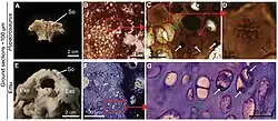27. ^ Bailleul, A. M.; Zheng, W.; Horner, J. R.; Hall, B. K.; Holliday, C. M.; Schweitzer, M. H. (2020). "Evidence of proteins, chromosomes and chemical markers of DNA in exceptionally preserved dinosaur cartilage". National Science Review. 7 (4): 815−822. doi:10.1093/nsr/nwz206. PMC 8289162. PMID 34692099.