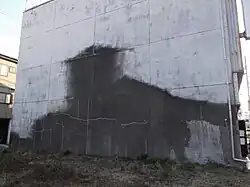 Nurikabe is the word for "plaster wall" in Japanese. This overlaps with the Useless Doorway and Useless Window categories. It refers to a door or window that was meant to be completely sealed up with concrete, but a difference can still be seen between it and the surrounding area.