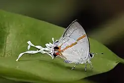 Hypolycaena lebona, the fairy hairstreak, is a butterfly in the family Lycaenidae. It is found in Sierra Leone, Liberia, Ivory Coast, Ghana, Togo, Nigeria, Cameroon, Gabon, the Republic of the Congo, the Central African Republic, the Democratic Republic of the Congo, Uganda and Tanzania.[2] The habitat consists of forests.