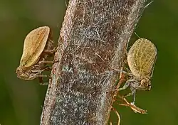 The adult planthoppers reach 5–7 millimetres (0.20–0.28 in) of length, the basic coloration of their body is mostly pale brown or yellowish, with well drawn veins on wings. The females are usually bigger than the males.