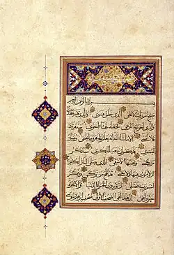 A page from the Surah of Quran with name of Surah Al-Ala with illumination, 16th century