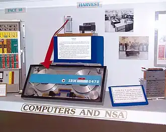 In April 1958, the final design for the NSA-customized version of IBM's Stretch computer had been approved, and the machine was installed in February 1962.[1] The design engineer was James H. Pomerene,[2] and it was built by IBM in Poughkeepsie, New York. Its electronics (fabricated of the same kind of discrete transistors used for Stretch) were physically about twice as big as the Stretch to which it was attached. Harvest added a small number of instructions to Stretch and could not operate independently.
