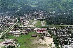 An air traffic control team headed by Squadron Leader George Christianson arrived from Townsville on the seventh aircraft to arrive at Dili with the 3rd Brigade staff, but without communications equipment. Christianson went to the control tower and explained, through an interpreter since he did not speak Indonesian, that he was a traffic controller, and joined the TNI personnel there, using their radios.[63][66] No. 381 Expeditionary Combat Support Squadron RAAF assumed responsibility for the operation of the airport at Dili, while No. 382 Expeditionary Combat Support Squadron RAAF operated Cakung Airport at Baucau. The two squadrons were part of the No. 395 Expeditionary Combat Support Wing RAAF. No. 2 Airfield Defence Squadron RAAF provided security for the airports,[64] which were secured by 2 RAR on 22 September.[67] The RAAF was short of aircraft loaders, so they were augmented by two six-person RNZAF teams: one in Darwin and one in Dili, which joined the 22 RAAF loaders there.[68]