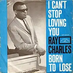 "I Can't Stop Loving You" is a popular song written and composed by the country musician Don Gibson from his 1958 album Oh Lonesome Me, who first recorded it on December 3, 1957, for RCA Victor Records. It was released in 1958 as the B-side of "Oh Lonesome Me", becoming a double-sided country hit single. At the time of Gibson's death in 2003, the song had been recorded by more than 700 artists, most notably by Ray Charles, whose recording reached No. 1 on the Billboard Hot 100 chart.[5]