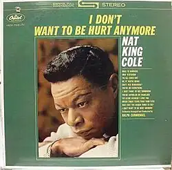 I Don't Want to Be Hurt Anymore is a 1964 studio album by Nat King Cole, arranged by Ralph Carmichael.[1] The album reached #18 on Billboards Top LP chart. I Don't Want to Be Hurt Anymore b/w People was released on Capitol 5155 in 1964, charting on the Billboard Hot 100 at #22 and #100, respectively. I Don't Want to See Tomorrow b/w L-O-V-E peaked at #34 on the Billboard Hot 100 on August 19, 1964 on Capitol 5261. The B-side peaked at #81 on the Billboard Hot 100 on August 26, 1964.[2]