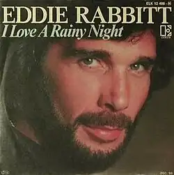 "I Love a Rainy Night" is a song co-written and recorded by American country music artist Eddie Rabbitt. It was released in November 1980 as the second single from his album Horizon. It reached number one on the Hot Country Singles,[3] Billboard Hot 100, and Adult Contemporary Singles[4] charts in early 1981. It was written by Rabbitt, Even Stevens, and David Malloy.