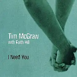 "I Need You" is a song written by David Lee and Tony Lane, and recorded by American country music artist Tim McGraw and his wife, Faith Hill as a duet. It was released in April 2007 as the second single from the album, Let It Go. The song peaked at number 8 on the country charts in August 2007, partly due to competition with individual singles from Hill and McGraw ("Lost" and "If You're Reading This", respectively).