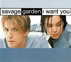 "I Want You" is a song by Australian pop duo Savage Garden, originally released in Australia on 27 May 1996 as the lead single from their debut album, Savage Garden (1997). The single reached number one in Canada and peaked at number four in Australia and on the US Billboard Hot 100. Much of the song's chart success in the US was the result of Rosie O'Donnell playing the song on several episodes of The Rosie O'Donnell Show.[2] In the United Kingdom, the single was issued twice, achieving its highest peak of number 11 during its initial release in 1997.