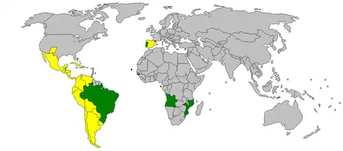 - Portuguese, official language in nine countries including Portugal and Brazil. After Spanish, Portuguese is the second most widely spoken Romance language in the world with over 250 million speakers, currently ranked seventh by number of native speakers.[14] Various Portuguese dialects exist outside of the European standard spoken in Portugal.