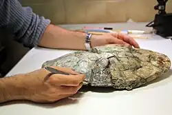 The type species, I. convenarum, was initially placed within Elochelys as E. convenarum by Laurent, Tong & Claude (2002).[2] It was moved to Iberoccitanemys when the genus was named in 2012[1] and is based on the holotype, MDEt Cas2-259, a nearly complete shell from the Marnes d'Auzas Formation in France.