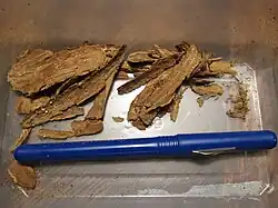 In African traditional medicine and rituals, the yellowish root or bark is used to produce hallucinations and near-death outcomes, with some fatalities occurring.[3] In high doses, ibogaine is considered to be toxic, and has caused serious comorbidities when used with opioids or prescription drugs.[3][4] The United States Drug Enforcement Administration (DEA) lists ibogaine as a controlled substance of the Controlled Substances Act.[3]