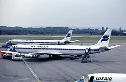 In 1969 the company acquired International Air Bahama, a small Bahamian airline that operated transatlantic nonstop service between Nassau and Luxembourg using Douglas DC-8 jetliners,[33] and a year later, Loftleiðir became one of the founders of Cargolux, a cargo airline. Also in 1970, Loftleiðir entered the jet age with its first two DC-8 aircraft.[34]