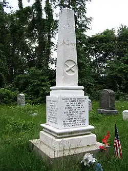 - Stephen Crane (1709 – July 1, 1780); grandfather, a delegate to the First Continental Congress. Bayoneted by Hessian troops passing through Elizabethtown on their way to Springfield on June 23, 1780, died of his wounds on July 1, 1780.