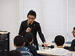 Ichiro Furutachi (古舘 伊知郎, Furutachi Ichirō; born December 7, 1954) is a Japanese announcer, tarento, television presenter, and newscaster represented by Furutachi-Project. He was an announcer for TV Asahi. He graduated from Kita Kuritsu Takinogawa Daini (No. 2) Elementary School, Chiyoda Kuritsu Kanda Hitotsubashi Junior High School, Rikkyo Niiza Junior and Senior High School, and Rikkyo University, where he studied Economics with a focus on Business Administration. Controversy erupted when he stepped down as the anchor of TV Asahi's evening news broadcast, Hōdō Station, a removal reportedly due to political pressure in response to the show's critical tone.[11][12]