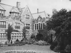 Dixon (left) in 1890 strolling on the south lawn of The Gables Mansion | |