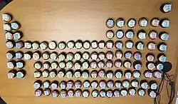 Freund was the first person to bake a set of periodic table cupcakes.[14][19] She used them as teaching aids in her classroom. She created boxes of chocolates with pictures of scientists and a large periodic table with each element represented by a cupcake decorated with its name and atomic number in icing.[1][20]