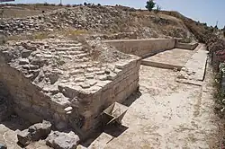 For a few months in 1928, a Swedish Cyprus Expedition effort, led by Erik Sjöqvist, worked at Idalium. Their primary work was a complete excavation of the upper portion of the West Acropolis (Ambelleri) finding a fortified sanctuary of Anat-Athena. Votive gifts consisting mainly of weapons and tools were found. Personal accessories such as pins, fibulae, earrings, bracelets, and different kinds of pottery. They also made soundings in the surrounding terrace, finding the royal palace of Idalion, and excavated a number of tombs, which ranged from the Cypro-Archaic to the Hellenistic periods in date.[14] They proposed six different building periods for the West Acropolis area. Periods 1–3 were dated to the Late Cypriote III (1200-1050 BC), when the city kingdom of Idalion seems to have been formed. Periods 4–6 were considered to belong from Cypro-Geometric III to Cypro-Archaic II (1050-850 BC).[15][16][17][18]