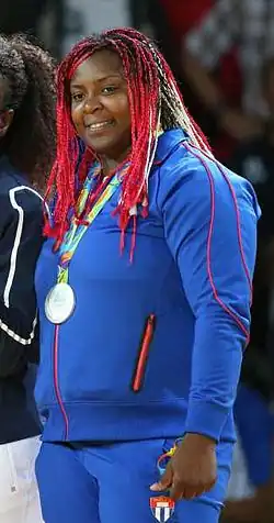 Idalys Ortiz Bocourt (born 27 September 1989) is a Cuban retired[4] judoka.[5] She competed in the over 78 kg division at the 2008, 2012 and 2016 Olympics and won a medal on each occasion. She won the silver medal in the women's +78 kg event at the 2020 Summer Olympics held in Tokyo, Japan.[6][7] She announced her retirement from active sports after falling in the round of 16 at the Paris 2024 Olympic Games.[4]