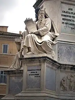 Ignazio completed a statue of Moses (1857) for the Column of the Immacolata that was erected in 1856 in front of the palace of Propaganda Fide in Piazza di Spagna. It is on one of the four pedestals upholding the column, along with statues of David, Ezekiel, and Isaiah.