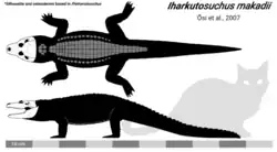 Iharkutosuchus ("Iharkút crocodile", after where it was found) is an extinct genus of basal eusuchian crocodyliform. Its fossils have been found in the Santonian-age Upper Cretaceous Csehbánya Formation in the Bakony Mountains of western Hungary.[2]
