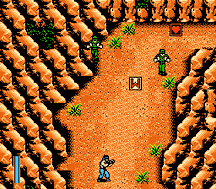 The NES console version maintains the characters design and basic gameplay from the arcade version with a variety of enemies and weapons and life bars for the players. The 1989 IBM version box art "Ikari III" was produced for SNK by Marc Ericksen following his earlier renditions for SNK's Guerrilla War and P.O.W. releases, and as in the arcade version, the kidnapped child is a young boy. The NES version plot is slightly different from the arcade version: there is an expanded background, the Ikari Warriors are named Paul and Vince, the kidnapped child is a girl instead of a boy, and there is am exclusive fourth side-scrolling shooter stage which has the warriors scuba-diving.