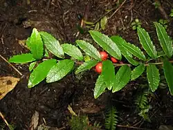 Ilex rugosa, the tsuru holly, is a species of flowering plant in the family Aquifoliaceae, native to southern Khabarovsk Krai, Sakhalin, and the Kuril Islands in Russia, and to eight mountain summits in Japan.[2][1] It is usually quite prostrate (growing ever lower with increasing altitude) and does well in areas with protective winter snow cover to prevent damage from late frosts.[1]