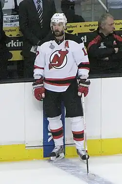 As a result of the 2012–13 NHL lockout, Kovalchuk elected to sign a temporary contract with SKA Saint Petersburg of the Kontinental Hockey League (KHL) on 18 September 2012. Kovalchuk played in Russia until a labor agreement was reached between the NHLPA and the NHL in January, allowing the 2012–13 NHL season to start. Kovalchuk was named captain of SKA Saint Petersburg at his contract signing.[29] In addition, Kovalchuk was the subject of criticism for not returning to the United States immediately after the lockout ended, instead electing to be one of two participating NHL players in the KHL All-Star Game (the other being Pavel Datsyuk). Kovalchuk served as the captain of the Western Conference and returned to the United States to the Devils' training camp immediately after. He finished the season with 31 points in 37 games for the Devils, and 42 points in 36 games for SKA.[30][31]