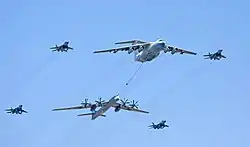The Ilyushin Il-78 (Russian: Илью́шин Ил-78; NATO reporting name Midas) is a Soviet/Russian four-engined aerial refueling tanker based on the Il-76 strategic airlifter.[2]