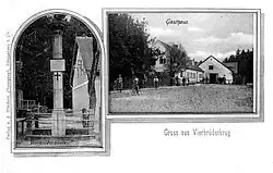 Metgethen developed into a villa suburb ca. 1900 and was popular for day trips,[1] especially its Vierbrüderkrug inn and the Vierbrüdersäule memorial honoring the legend of four half-brothers of the Teutonic Knights slain by Sudovians in the 13th century.[4] The suburb contained the Landfrauenschule Metgethen, a school for East Prussian women, as well as the fire academy[5] and a Volkssportschule to train physical education teachers.[6] A church for the village was sponsored by the merchant Gustav Bruhn and built by Edmund May in 1924-1925. Metgethen was incorporated into the city of Königsberg in 1939;[7] to the east of Metgethen was the quarter Moditten.