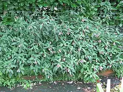 This plant is cultivated as an ornamental. Although hardy to −10 °C (14 °F), it requires a sheltered position in full or partial shade, and a protective mulch in winter. Plants may become evergreen in warmer climates.[3] It grows in moist places, forest understories and thickets.[4]