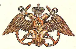 The Emperor of Russia was the commander-in-chief of the armed forces and administered the fleet through the Ministry of the Navy.[29] After the creation of the State Duma the Navy also had to negotiate with the defense committee in the parliament for approval to finance its armament plans.[30] The rank and post of General Admiral was the ceremonial head of the navy and was held by a member of the Romanov dynasty. The Director of the Navy Ministry assisted the General Admiral.[31] The position of General Admiral was abolished in 1905 after the defeat to Japan and the Navy Minister became the head of the Navy.[32] Within the Ministry, the Main Staff was responsible for the overall administration of the navy as well as the preparations for war. There was also the Main Administration for Shipbuilding and Supplying and the Naval Technological Committee. The roles of all three organizations were broad and they had disputes over their jurisdictions. There was no separate naval general staff for setting strategic doctrine and operational planning, and the role of deciding on strategy was given to special commissions of admirals that were led by the General Admiral or the Director of the Navy Ministry. In 1902, there was a proposal to form an operations section in the Main Staff and other naval staffs in each fleet of the navy,[33] but it was not until 1906 that Emperor Nicholas II created a Naval General Staff.[32] From that point the Main Staff was only responsible for administrative tasks, leaving strategic and operational planning to the new organization.[34]