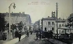 Samuel Agnon stayed in Germany from 1915 to 1924.[9] There was a strong Jewish community in Leipzig at that time: "In the mid-1920s, Leipzig's Jewish community had tripled in size since 1890 due to a large influx of people from Russia, Poland and Galicia, and now embodies one of the largest Jewish communities with over 13,000 members in Germany."[10] Today's Böttchergäßchen (revived in 2001) is 70 feet further south than the historic one.[11] It is documented that "the area between the Old Town Hall and Brühl remained almost untouched of structural changes",[12] before it was destroyed. After World War II, it had to give way to the newly created Sachsenplatz in the GDR years, which no longer exists today and has been developed with the Museumsquartier Leipzig.
