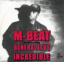 "Incredible" is a song by British jungle producer M-Beat featuring General Levy on vocals. It was first released as a single in 1994, by Renk Records, and reached number 39 on the UK Singles Chart. A re-release a few months later featuring new mixes was much more successful, peaking at number eight, and remaining on the chart for 12 weeks.[5] "Incredible" was the first jungle track to reach the top 10 in the UK.[6]