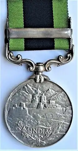 The 1909 IGSM was awarded for various minor military campaigns in India from 1908 to 1935. Each campaign was represented by a clasp on the ribbon; 12 were sanctioned.[2]