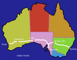 - ^ "Indian Pacific Timetables". Great Southern Rail. 2018. Archived from the original on 19 February 2018. Retrieved 3 March 2018.