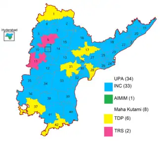 | UPA | SEATS | TRS | SEATS | TDP | SEATS |