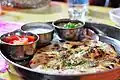 | Chapati | ![]() | An unleavened flatbread (also known as roti),[7] it is a common staple of cuisine in South Asia, as well as amongst South Asian expatriates. Versions of the dish are also found in Central Asia and the Horn of Africa, with the laobing flatbread serving as a local variation in China. Chapati is known as doday in Pashto. |