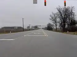On the north side of Fort Wayne at the Dupont Road interchange of Interstate 69 (I-69), the northern section of SR 1 begins and heads east. The road heads away from I–69 as a six-lane divided highway, along the south edge of the Parkview Regional Medical Center complex, passing through numerous commercial properties. The highway narrows to a four-lane divided highway at Diebold Road and then enters an area of mixed commercial and residential properties. At Tonkel Road, SR 1 begins to curve northeast toward Leo and narrows to a two-lane highway. The route then leaves Fort Wayne, passing through rural farm land with scattered houses. Curving due north to enter Leo on Main Street, SR 1 then passes through residential areas of that town. North of downtown Leo the highway curves northeast and passes through a mix of commercial and residential properties. As the road enters DeKalb County it curves to run due north. The highway then enters Spencerville, passing through the center of town. After Spencerville, the road curves northeast, before again turning back north. The highway enters St. Joe and takes a sharp curve to head due east. The route crosses CSX Railroad tracks and makes another sharp curve heading due north. The road continues north until it meets SR 8. The two routes head east-southeast for a 1.04 miles (1.67 km) concurrency, until SR 1 departs the joint section heading due north. The road then passes through rural farmland, with a few houses, as a two-lane highway. Upon entering Butler it crosses the Norfolk Southern Railroad tracks, before encountering a signalized intersection with US 6 in downtown Butler. SR 1 then leaves Butler heading due north until it intersects DeKalb County Road 46, at which point the highway turns northwest. The route enter Hamilton and begins a concurrency with SR 427, heading northeast and passing Hamilton Lake. After 0.84 miles (1.35 km), SR 1 leaves the concurrency heading due north. The highway then continues in that direction until reaching its northern terminus at US 20.[3][4][5]