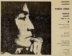 The Indica Gallery was a counterculture art gallery in Mason's Yard (off Duke Street), St James's, London from 1965 to 1967, in the basement of the Indica Bookshop. John Dunbar, Peter Asher, and Barry Miles owned it, and Paul McCartney supported it and hosted a show of Yoko Ono's work in November 1966, at which Ono met John Lennon.[3][4]