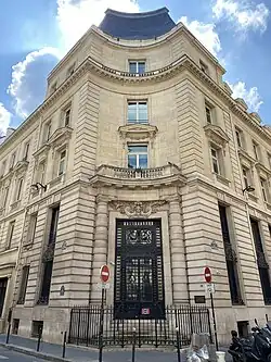 Originally, the bank was established at 34, rue Laffitte, in a building that was later demolished.[47] In July 1902, it moved to a new headquarter building nearby on 15 bis, rue Laffitte, designed by Henri Paul Nénot and whose exterior still survives.[48]