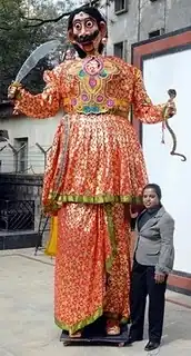 In 2010, on the festival of Dussehra Raveendra performed an act with a 10 feet tall puppet called Mahishasura.[4][5][6]