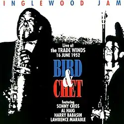 Inglewood Jam, also known as Bird and Chet and Live at the Trade Winds, is a live album by jazz saxophonist Charlie Parker, recorded in California in 1952 with trumpet player Chet Baker and Sonny Criss. It was released by the Jazz Showcase label in 1978.[1]