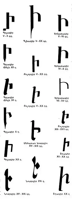 Ini (uppercase: Ի, lowercase: ի; Armenian: ինի) is a letter of the Armenian alphabet, used in the Armenian language.