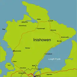 Inishowen (Irish: Inis Eoghain, meaning 'island of Eoghan') is a peninsula in the north of County Donegal in Ireland. Inishowen is the largest peninsula on the island of Ireland.[1]