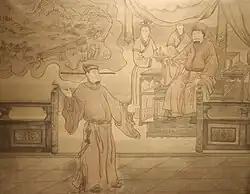 The early years of Injong's reign were dominated by his maternal grandfather Yi Cha-gyŏm.[7][8] As the Supreme Chancellor (munha sijung, junior first rank) at the head of combined Secretariat-Chancellery (chungseo munha-seong) Yi Cha-gyŏm was the highest-ranking government official.[9] His dominance was challenged during the last years of Yejong, but with the beginning of his grandson's reign Yi Cha-gyŏm took decisive steps to buttress it. By the end of 1122 Princes Po and Hye were exiled, Han An-in assassinated, and several hundred of his followers,[10] including a dozen core members of Tanju Han and Cheongan Im clans, were either banished or demoted.[3]