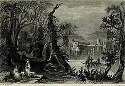 It is also the subject of "The Abbot of Innisfallen. A Killarney Legend", a poem by William Allingham, first published in Macmillan's Magazine (August 1864).[8] This was in turn set to music by Geoffrey Molyneux Palmer as The Abbot of Innisfalen, Op. 5, for baritone, chorus and orchestra, which won the cantata prize at the 1908 Feis Ceoil in Dublin.