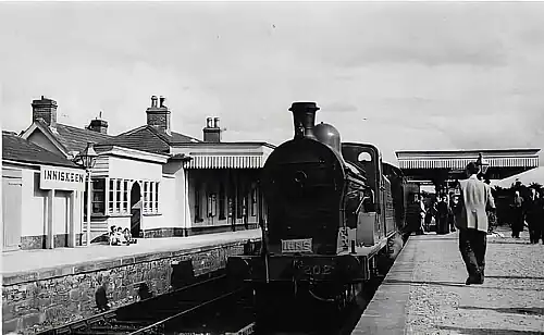 The Dundalk and Enniskillen Railway opened the station on 1 April 1851.[1] The station consisted of a substantial station house (extant), platforms, crane, turntable, water tank, goods shed and was also the junction for Carrickmacross.