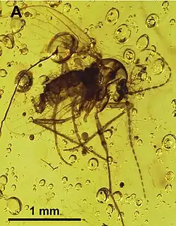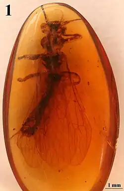 - ^ a b Engel, M.S. (2011). "New earwigs in mid-Cretaceous amber from Myanmar (Dermaptera, Neodermaptera)". ZooKeys (130): 137–152. Bibcode:2011ZooK..130..137E. doi:10.3897/zookeys.130.1293. PMC 3260755. PMID 22259272.